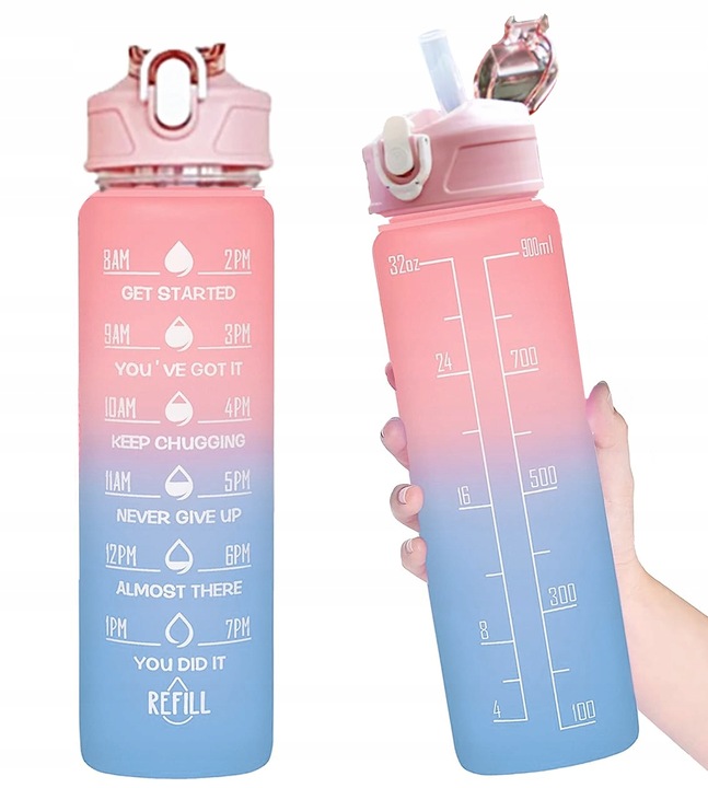 BIDON NA WODĘ SPORTOWY BUTELKA SPORTOWA 1L ZE SŁOMKĄ TRITAN motywacyjna