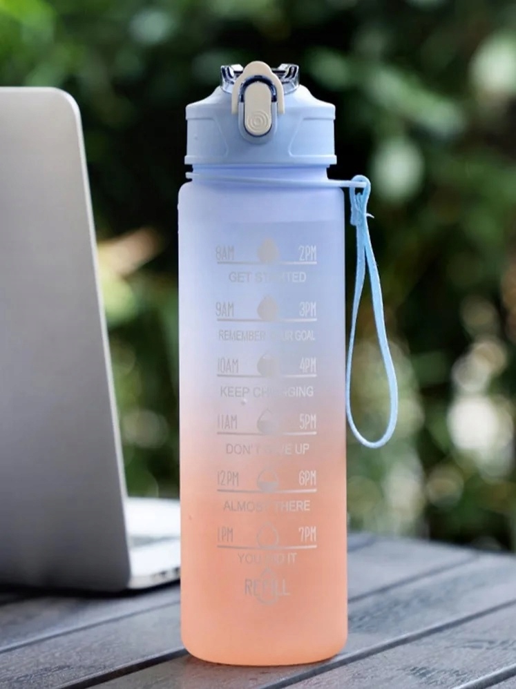 Hasła motywujące oraz znaczniki czasu umieszczone na butelce będą Ci przypominały o wypiciu wody, a także będą informowały o ilości dziennego spożycia wody.