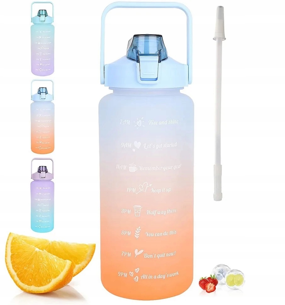 BIDON NA WODĘ SPORTOWY BUTELKA SPORTOWA 2L ZE SŁOMKĄ TRITAN motywacyjna BPA FREE