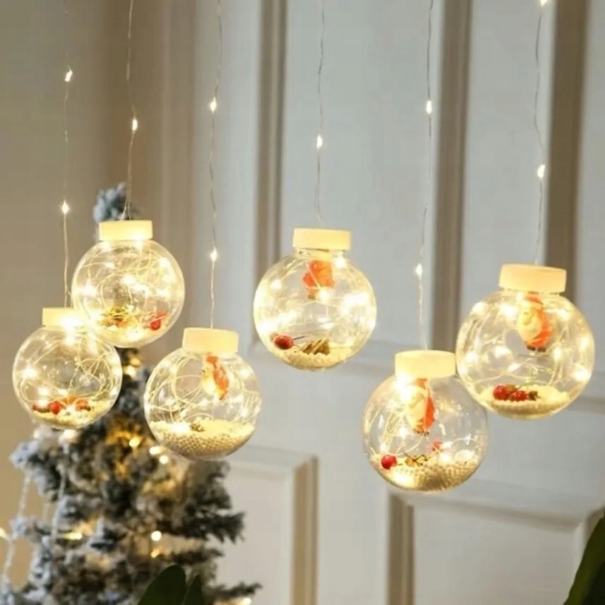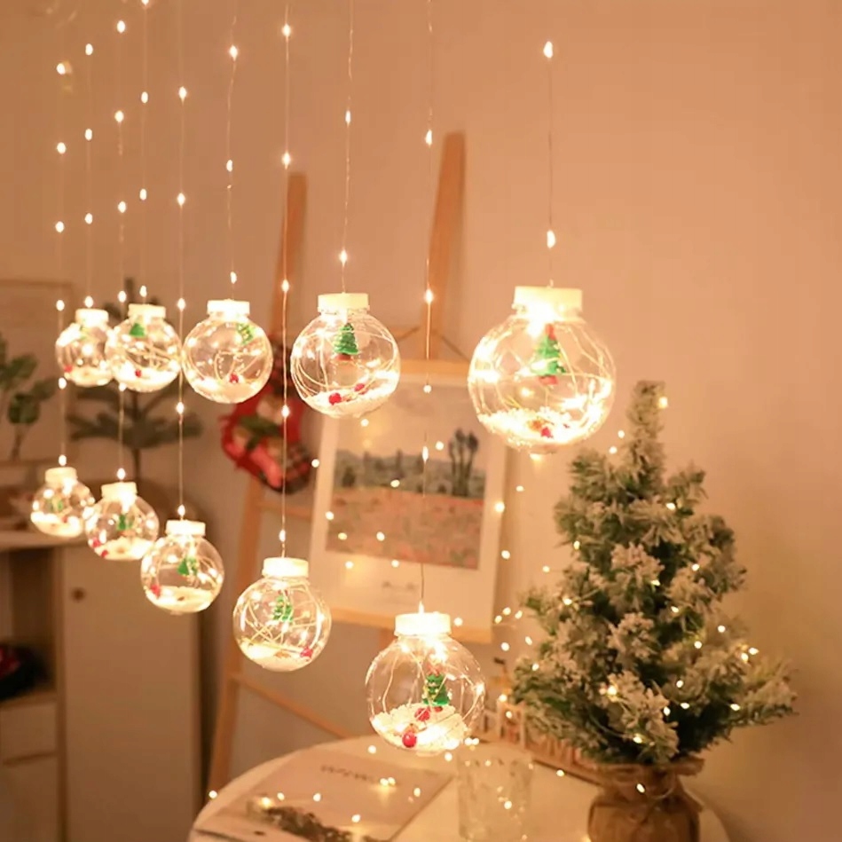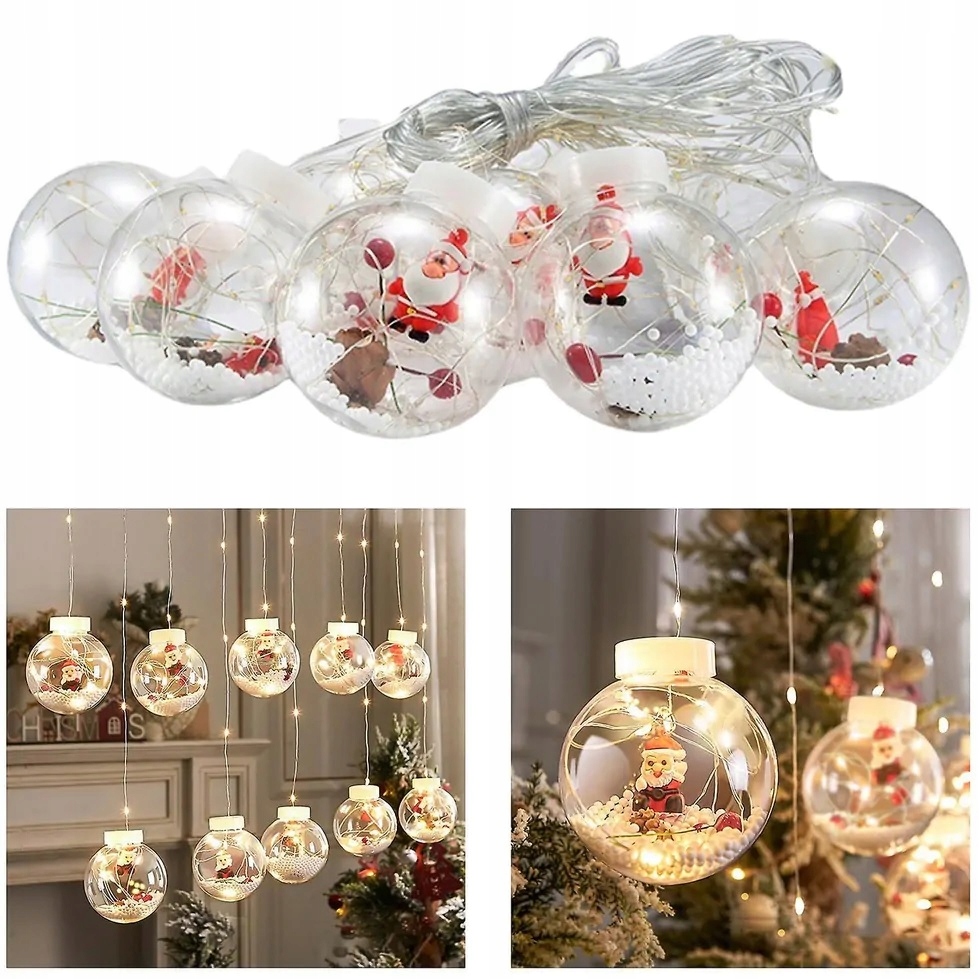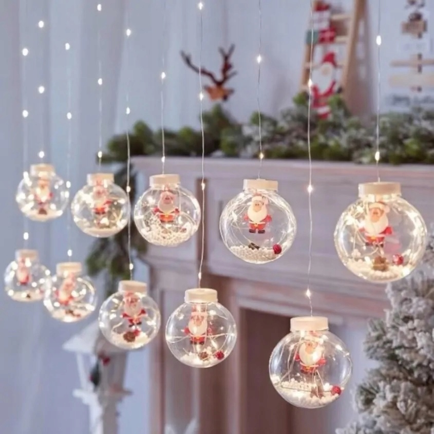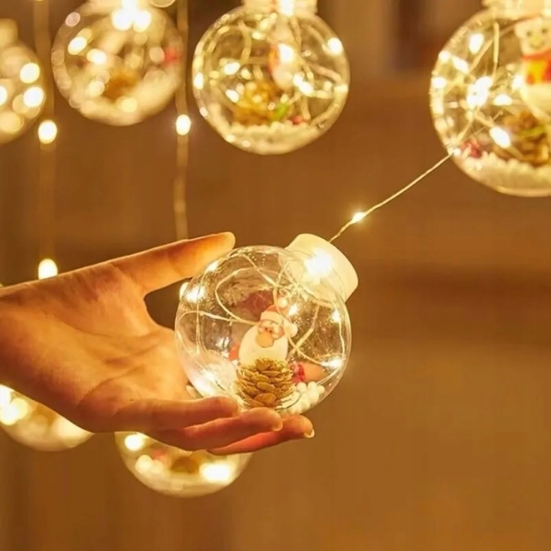 Wyjątkowa kurtyna świetlna LED w formie 10 kul z motywami świątecznymi wewnątrz to idealny sposób, aby stworzyć ciepłą, nastrojową atmosferę Bożego Narodzenia.