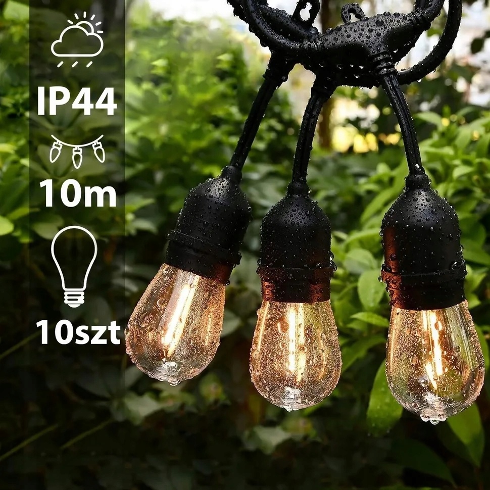 Girlanda posiada stopień ochrony IP44, co czyni ją odporną na warunki atmosferyczne.