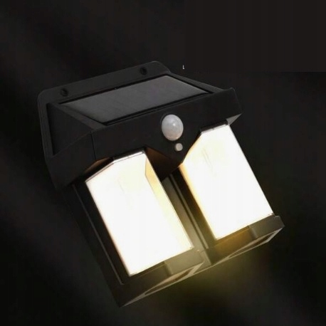 Lampa jest wyposażona w panel słoneczny, czujnik zmierzchu oraz ruchu. Idealnie sprawdzi się tam, gdzie nie ma możliwości doprowadzenia zasilania. Sprawdzi się do montażu na elewacji budynku, na działce czy ogrodzie. Lampa świeci w kolorze białym ciepłym 3000K.
