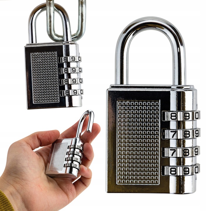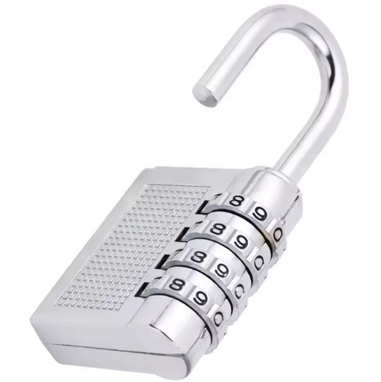 KŁÓDKA SZYFROWA SREBRNA NA SZYFR ZAMEK KOD ZMIENNY 4 CYFRY