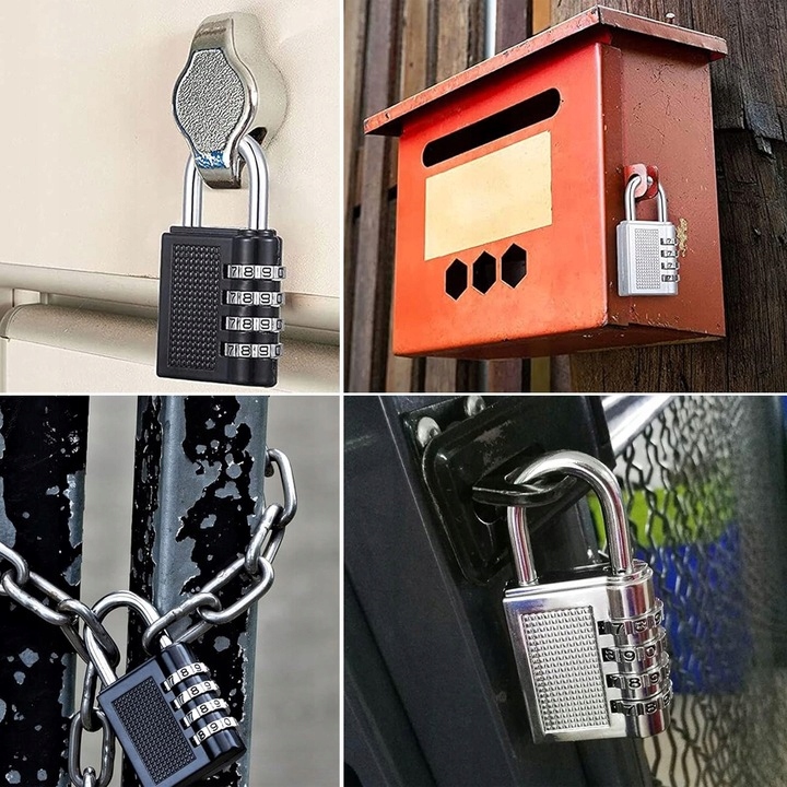 - Fabrycznie ustawiony szyfr to 0 - 0 - 0 - 0, należy go ustawić, aby otworzyć kłódkę.