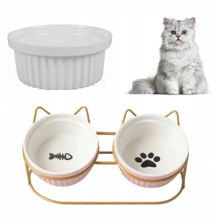 Podwójna ceramiczna miska dla kota lub psa na stojaku ️