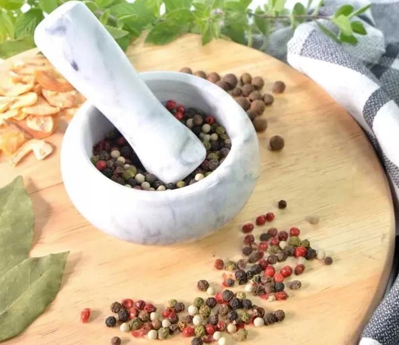 - Ostry środek pozwala na łatwe rozcieranie – ziarenek np. kolendry, pieprzu itp.