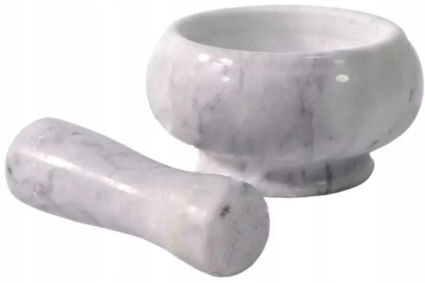Chropowate wnętrze moździerza oraz końcówki tłuczka czynią go idealnym do rozdrabniania ziół czy leków.