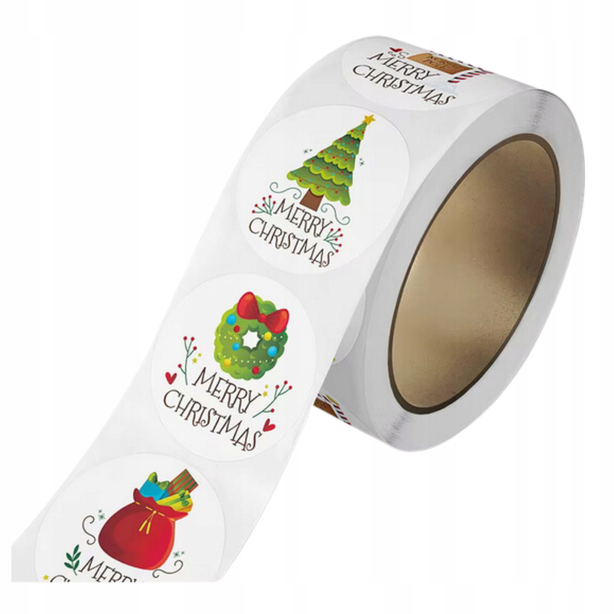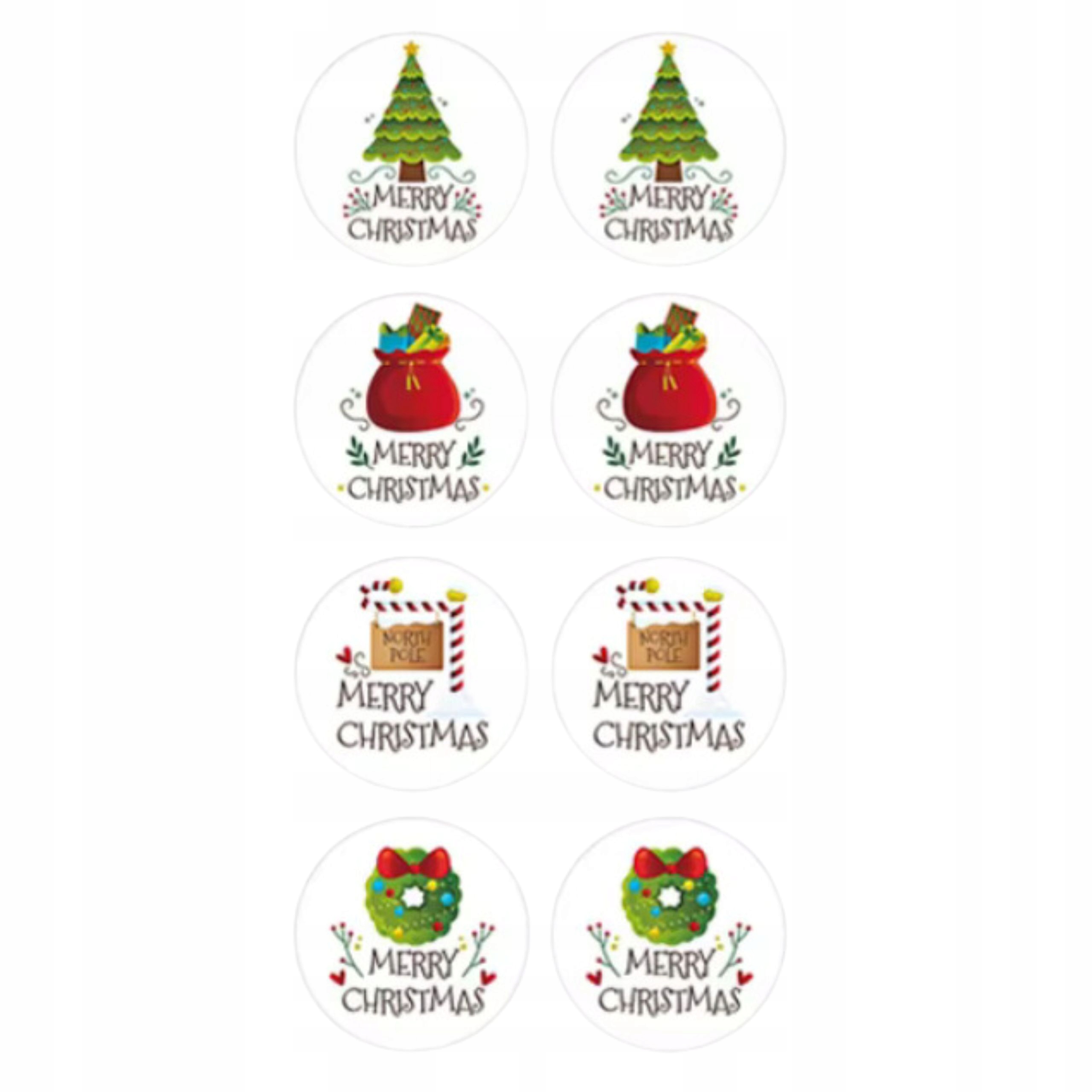 Naklejki Świąteczne Samoprzylepne na Prezenty Święta Ozdoby Mikołaj 500szt
