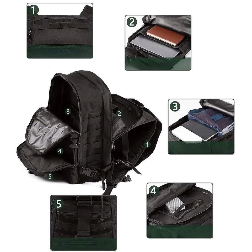 - ✅ System mocowań MOLLE: Pozwala na podczepienie dodatkowego sprzętu, takiego jak latarki, kijki trekkingowe czy kubki. ?️