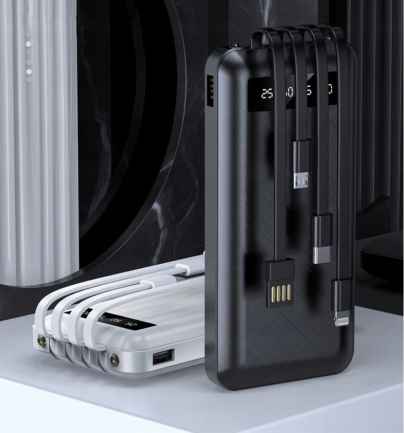 POWERBANK 20000 mAh USB + KABLE DO ŁADOWANIA USB TYP-C LIGHTNING MICRO-USB