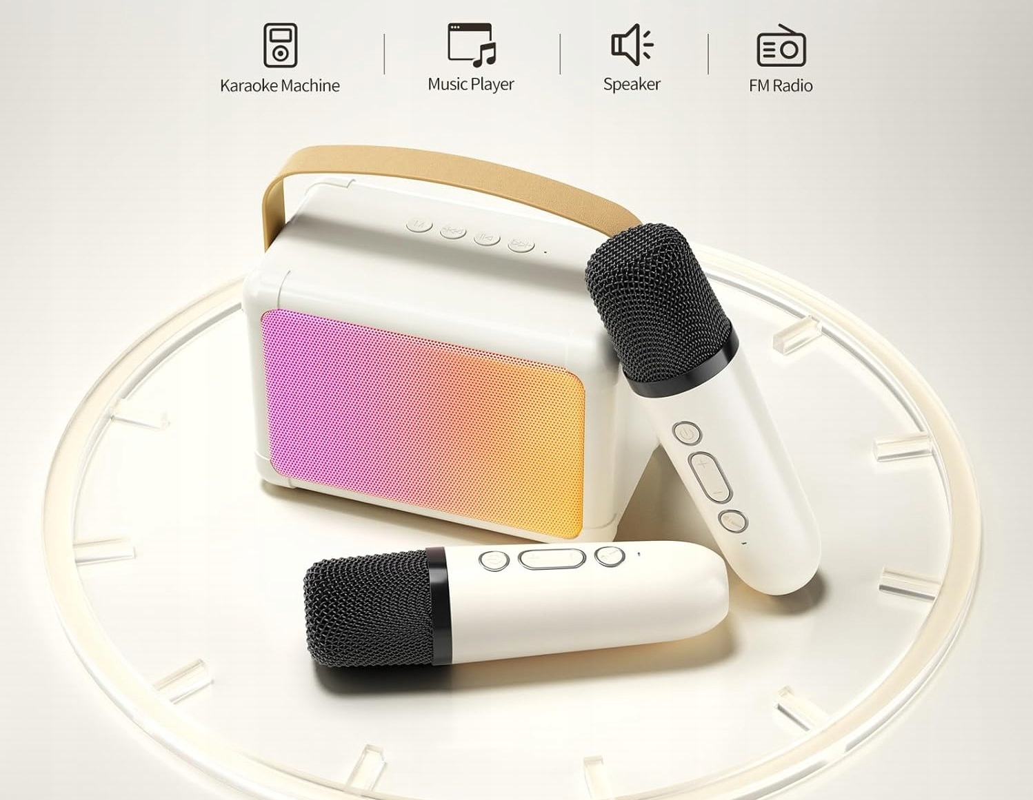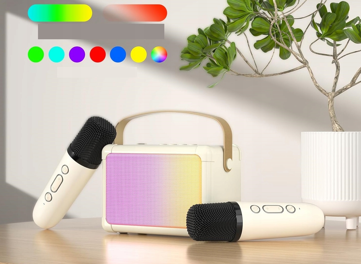MOCNY GŁOŚNIK KARAOKE Z MIKROFONAMI 3W1 OŚWIETLENIE LED DLA DZIECI