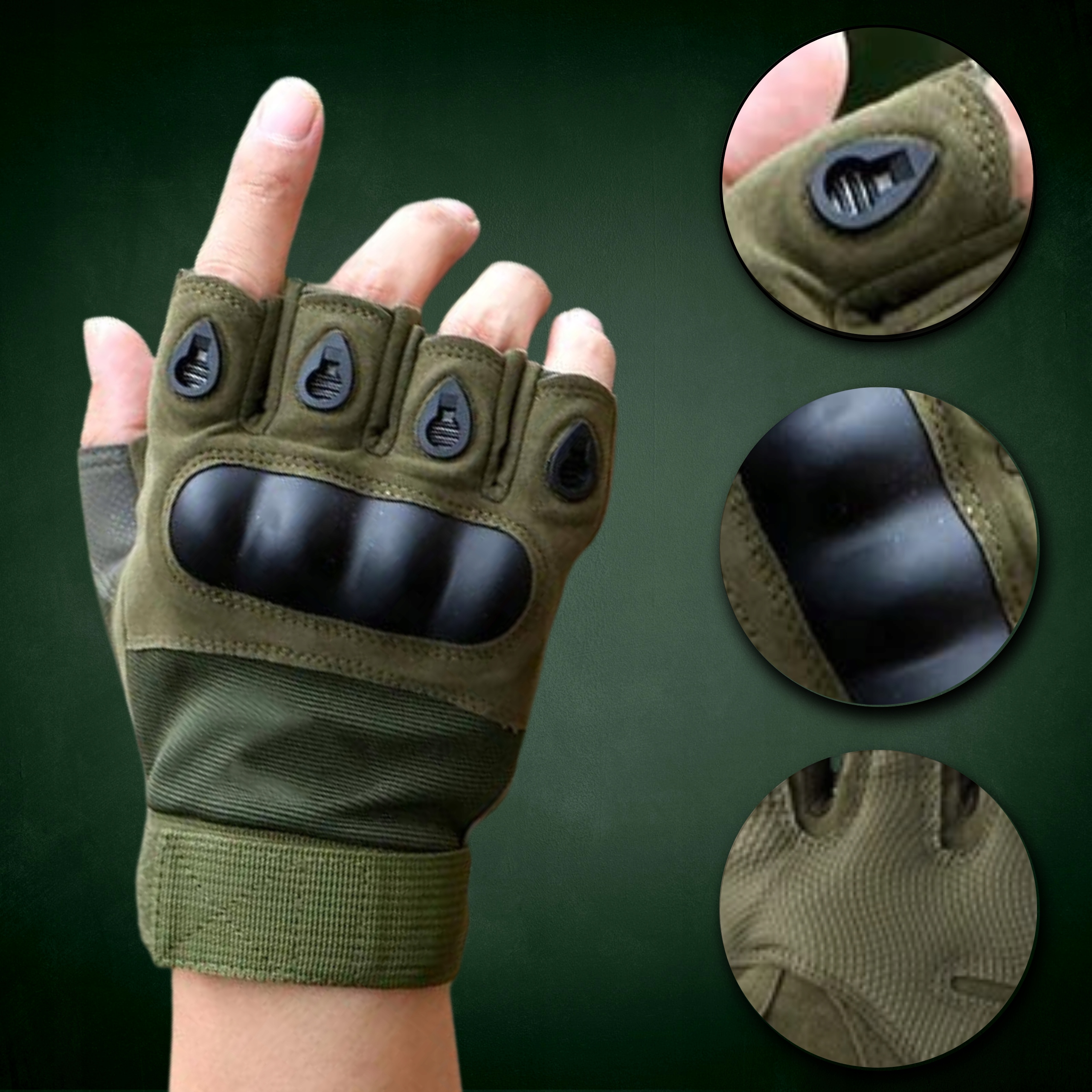 Rękawice Taktyczne Ochronne Usztywniane Ochrona kostek Bez palców Zielone L