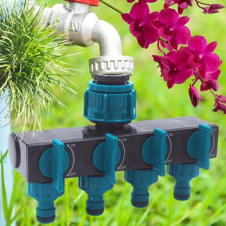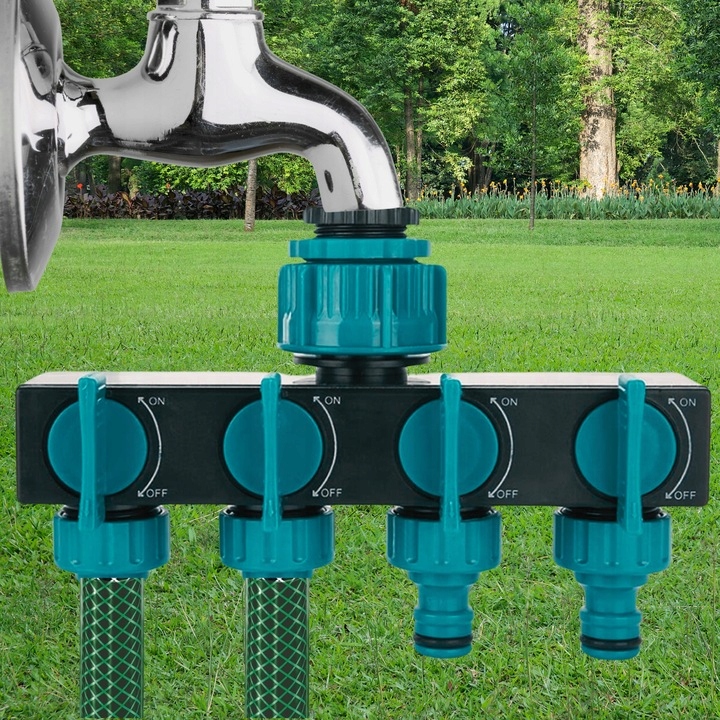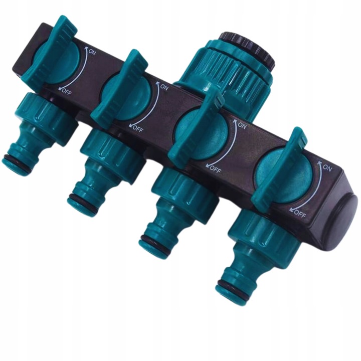 ROZDZIELACZ OGRODOWY DO WODY 4-DROŻNY Z ZAWORAMI NA WĄŻ SZYBKOZŁĄCZKA 3/4"