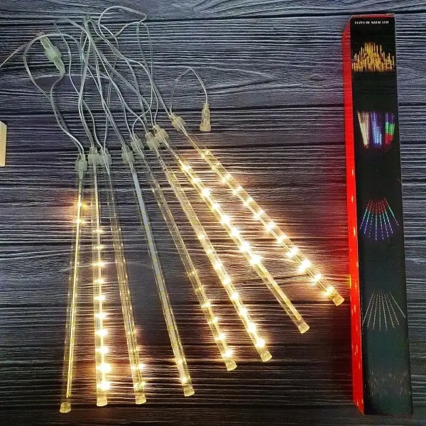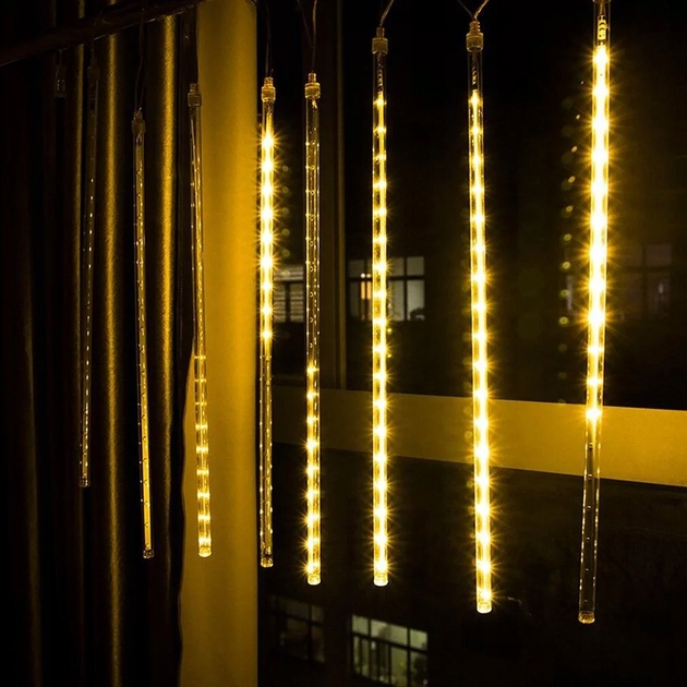 ❄️ Sople zewnętrzne meteoryty LED to elegancki i magiczny element dekoracyjny, który wprowadzi zimową atmosferę do każdego wnętrza lub otoczenia. Model składa się z 8 sopli o długości 50 cm każdy i całkowitej długości 3 metry. Wyposażony w 288 diody LED, które emitują ciepłe białe światło, tworząc efekt delikatnie topniejącego lodu. Dzięki przezroczystemu przewodowi girlanda wygląda estetycznie i jest niemal niewidoczna, gdy jest wyłączona, co sprawia, że idealnie nadaje się do ozdabiania okien, elewacji budynków, balkonów, choinek oraz innych elementów wnętrz i przestrzeni zewnętrznych.