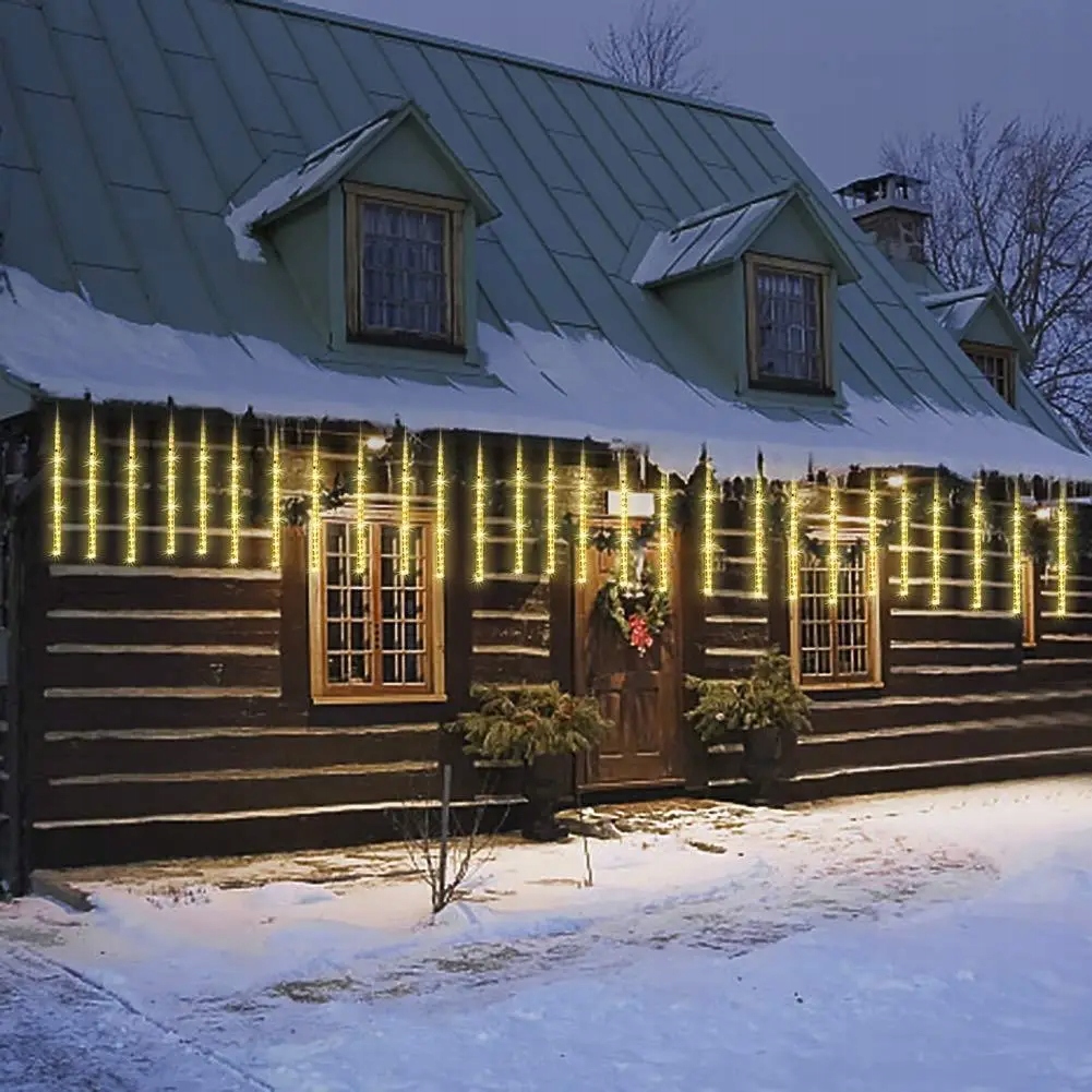 ☃️ Sople meteory 8 szt 50cm lampki LED padający śnieg przezroczysty drut 3m Kolor LED biały ciepły