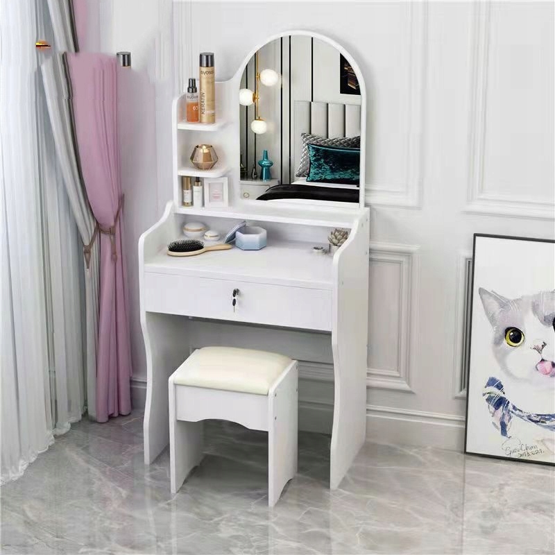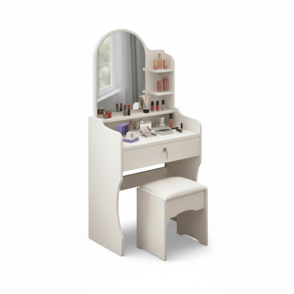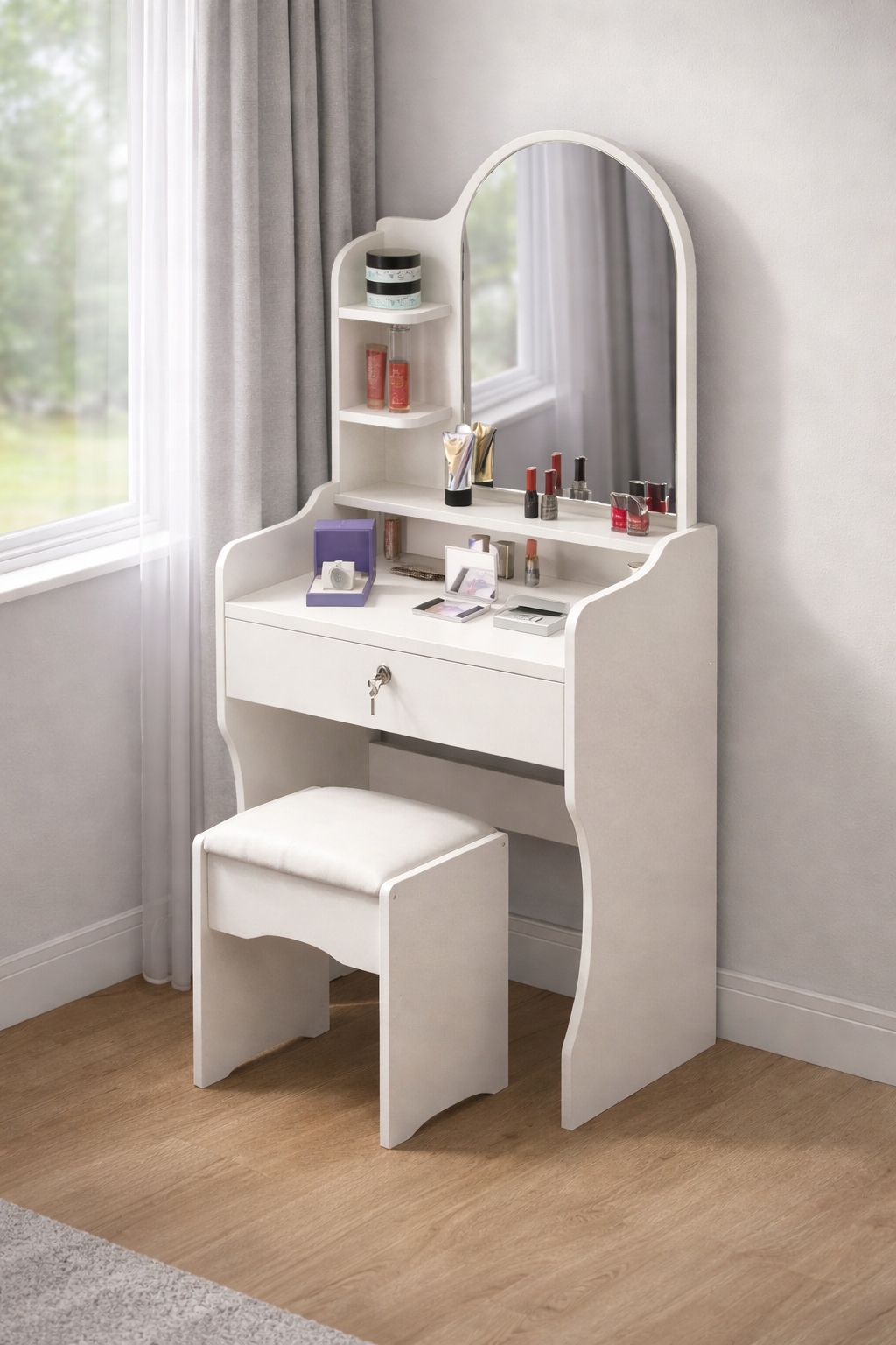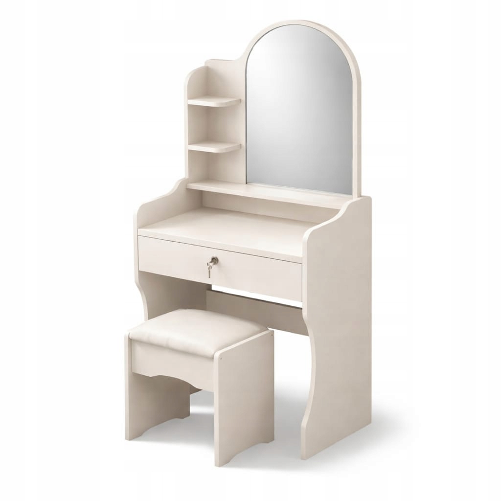 W komplecie znajduje się lekki, stabilny taboret, dopasowany wysokością do toaletki: