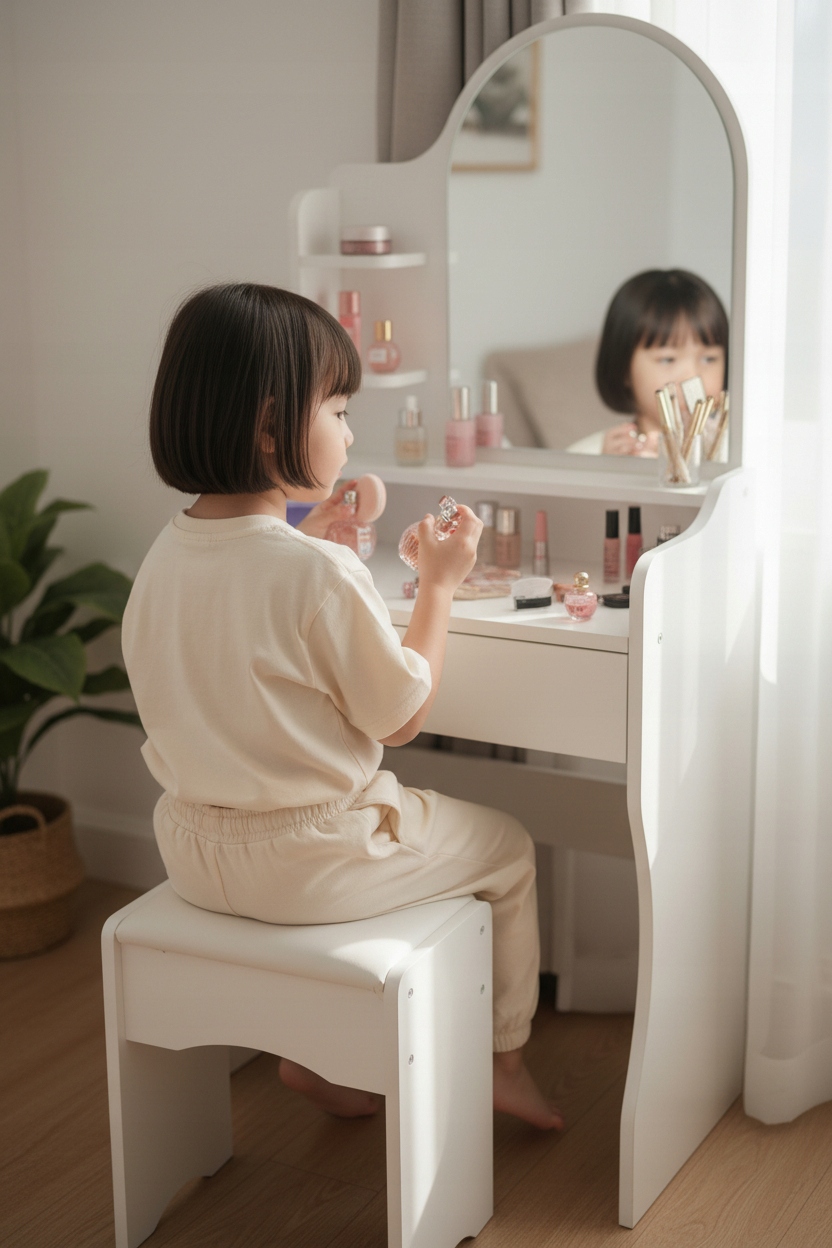 To idealne miejsce do zabawy w makijaż, czesania, przechowywania drobiazgów oraz codziennych rytuałów pielęgnacyjnych.