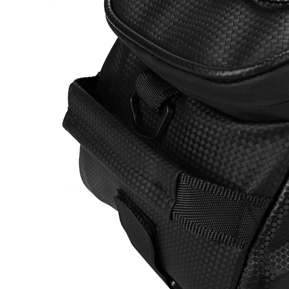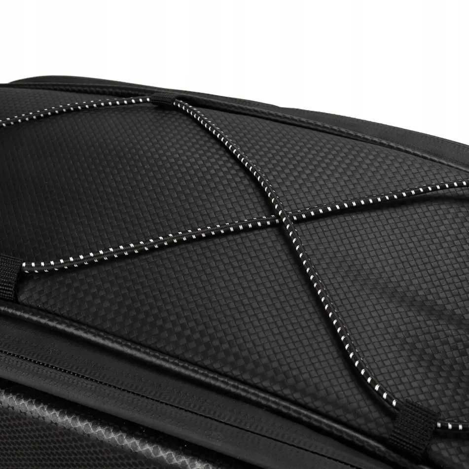 - Czarna torba z teksturą włókna węglowego wygląda nowocześnie i elegancko. Doskonale komponuje się z każdym rowerem i strojem, łącząc funkcjonalność z estetyką. ??