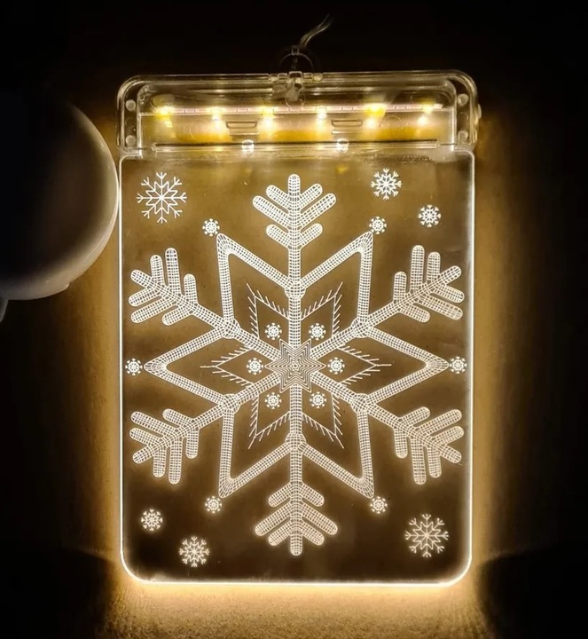 WITRAŻ led ŚWIĄTECZNY 3d na okno ozdoba lampki świąteczne ŚNIEŻYNKI OZDOBA
