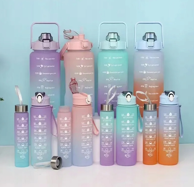 ✨ Zestaw 3 różnych pojemności: 2000ml, 900ml, 300ml – idealne do różnych aktywności fizycznych, od siłowni, przez rower, aż po codzienne użytkowanie.