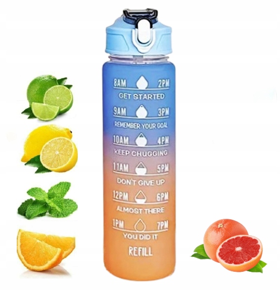 ⭐ Motywacyjna Butelka na Wodę 3w1 z Miarką! ⭐
