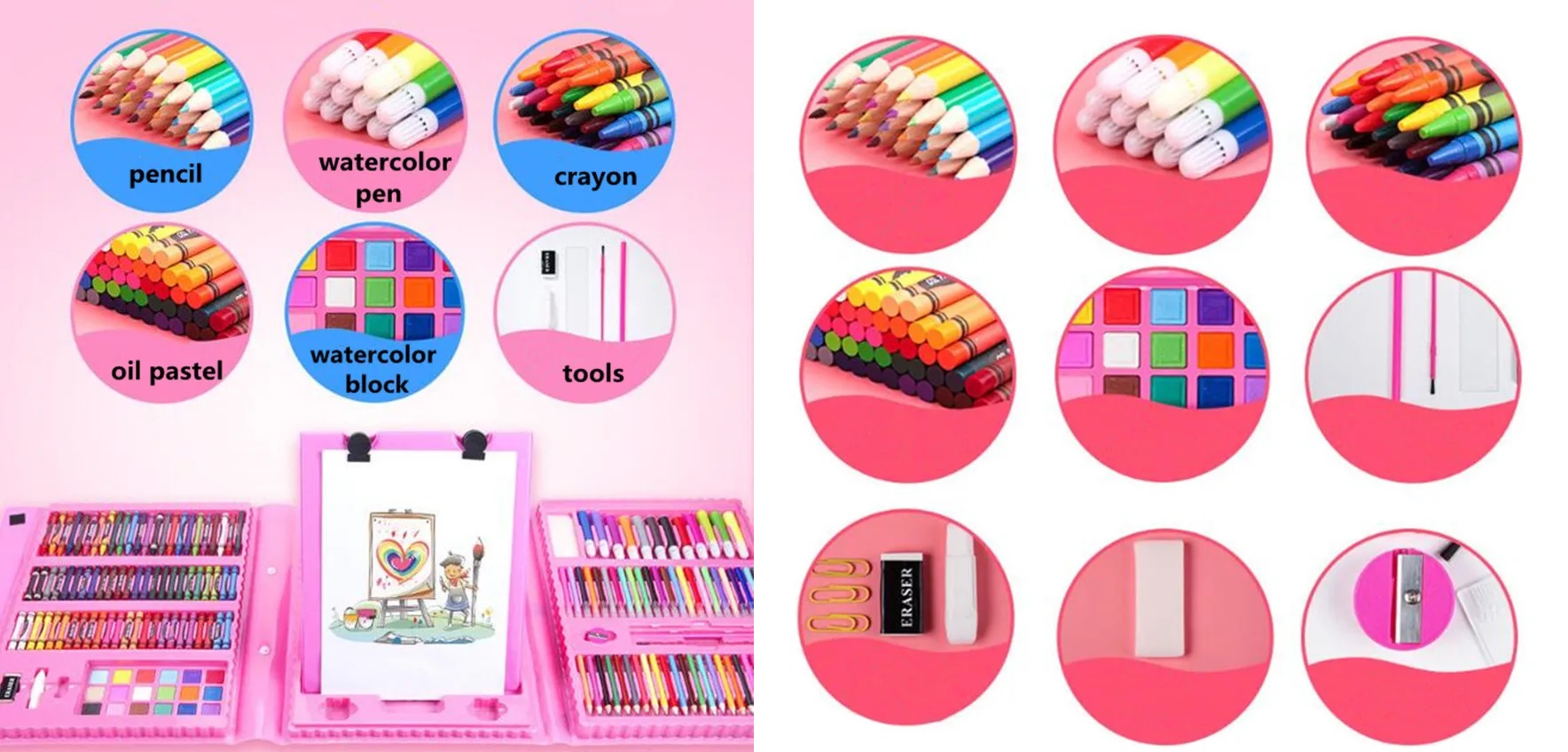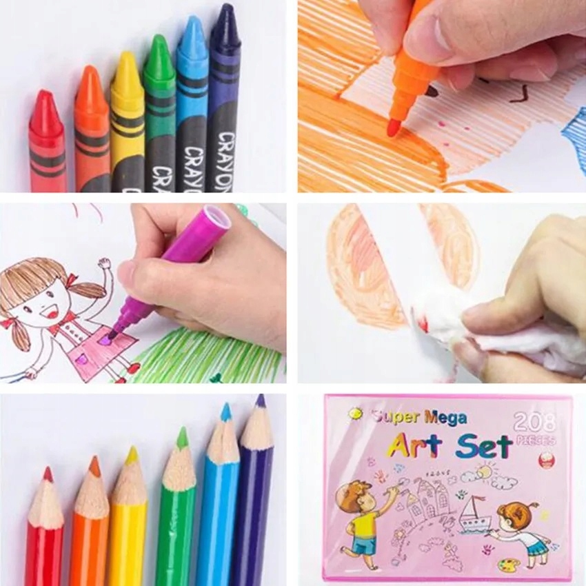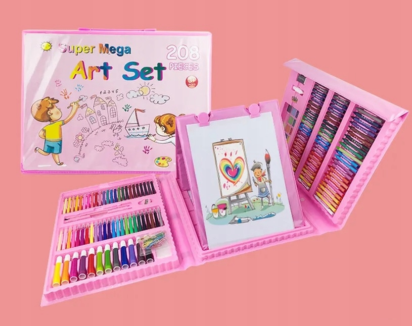 ✅ Duży zestaw – aż 208 elementów, zróżnicowana kolorystyka przyborów i możliwość doświadczania różnych technik rysunku